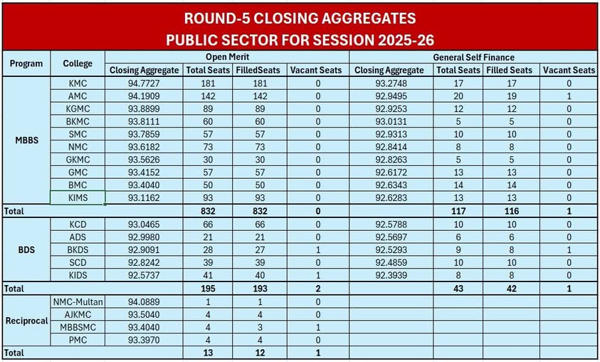 All aspirant candidates (Aggregate 92.9495 to 92.3808 ) are instructed to reach M. Hafizullah Auditorium, Khyber Medical University, Hayatabad, Phase 5 sharp at 10:00 AM for placement interviews/Upgradation.