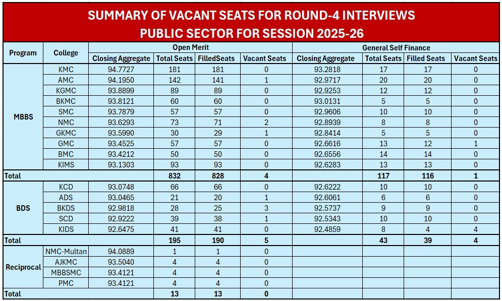 The candidates who have passed the Medical & Dental Colleges Admission Test (MDCAT) 2023/2024/2025 with minimum 55% marks for MBBS and 50% marks for BDS.